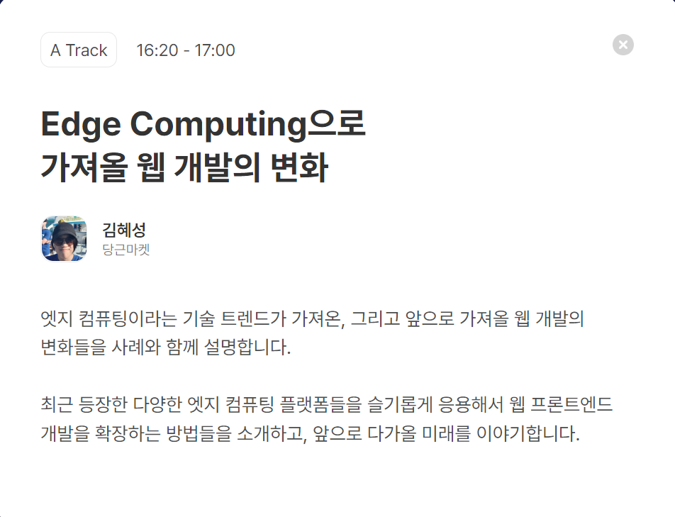 발표 챕터 중에 당근마켓 김혜성님이 발표하실 엣지 컴퓨팅에 관한 내용을 보게 되었다.
