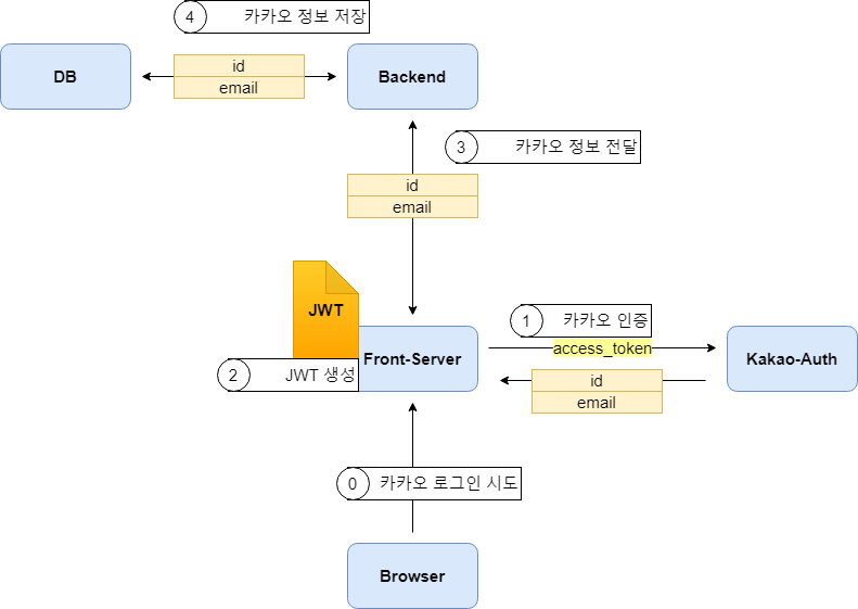 카카오 소셜 로그인 서버의 처리 흐름이다.