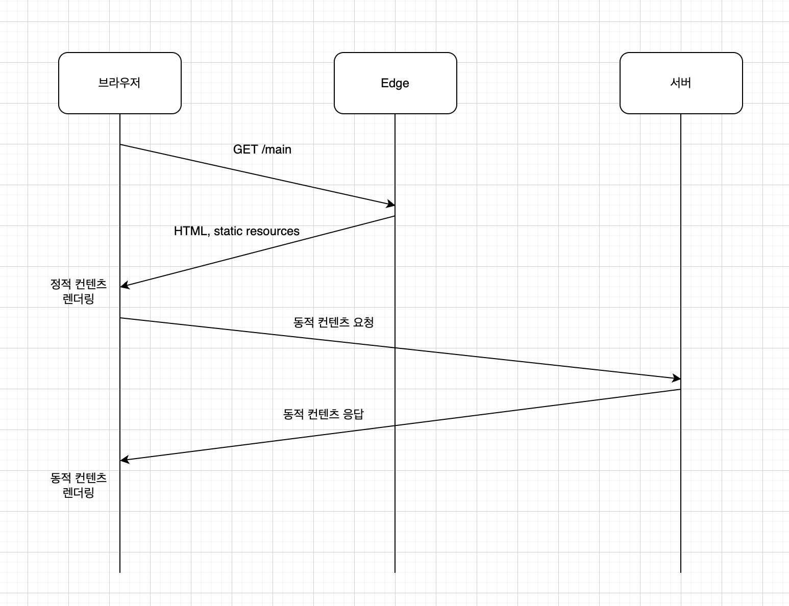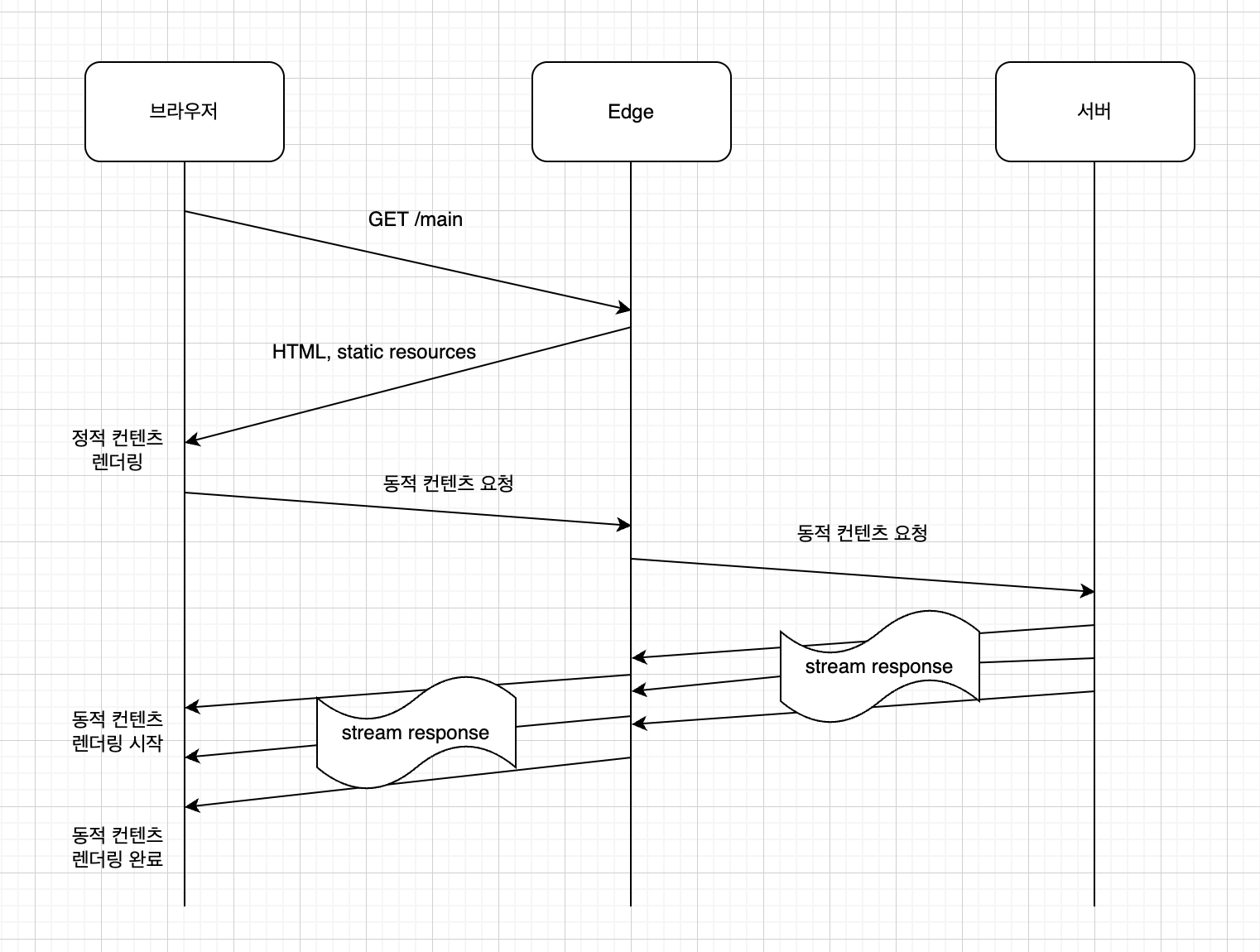 SSG+CSR 방식은 좋은 ux를 줄 수 있지만 한 가지 큰 문제가 있다. 서버와 사용자 간의 물리적 거리가 멀어서 네트워크 지연시간이 길다면 TTFB도 그만큼 길어지는 문제가 발생한다. 한국의 사용자가 미국 동부 오하이오에 있는 서버에서 받아온다고 생각하면 된다.