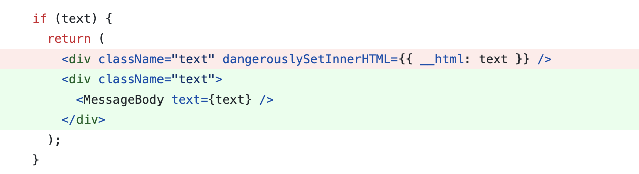 위와 같이 dangerouslySetInnerHTML에 동적 변수를 입력시키는 행위를 매우 조심해야 한다.