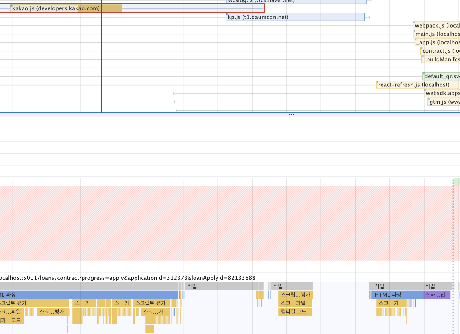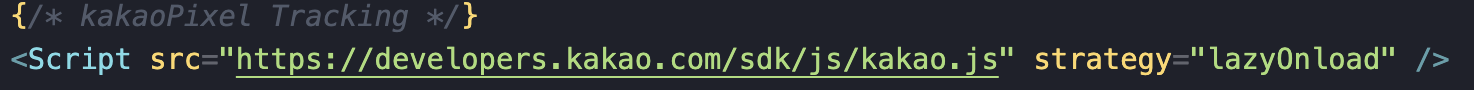 우리 서비스에서는 카카오 관련 모듈을 많이 사용하기 때문에 프로젝트 첫 진입 시에 kakao.js 스크립트를 비롯해 로그 추적 용으로 많은 스크립트를 로드하고 있다.