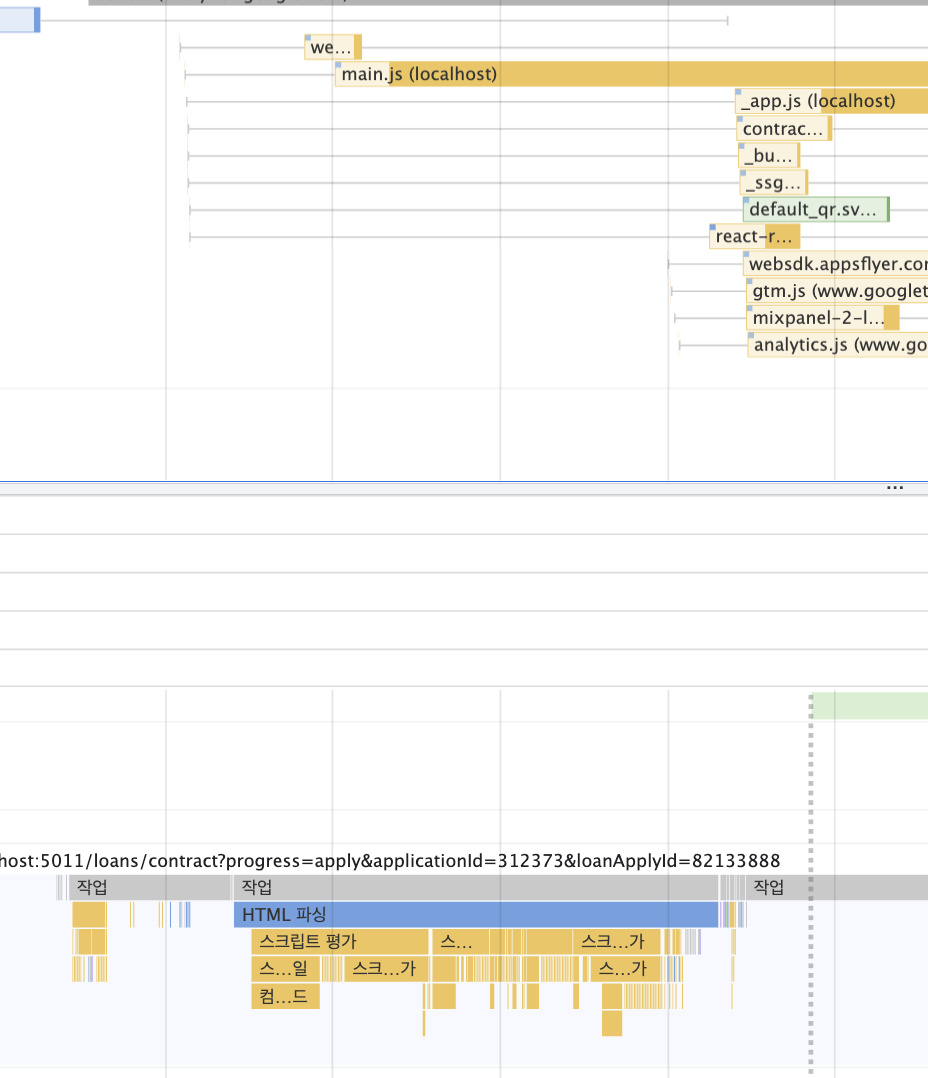 렌더링 화면을 분석한 결과 첫 화면이 보이기 전에 당장 보여지지 않아도 되는 PDF 컴포넌트의 스크립트를 평가하고 레이아웃을 재계산 하느라 많은 시간이 소요되는 것을 확인했다.