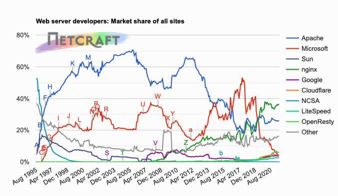 - 넷크래프트가 발표한 웹 서버 시장 점유율 (2021년 7월)