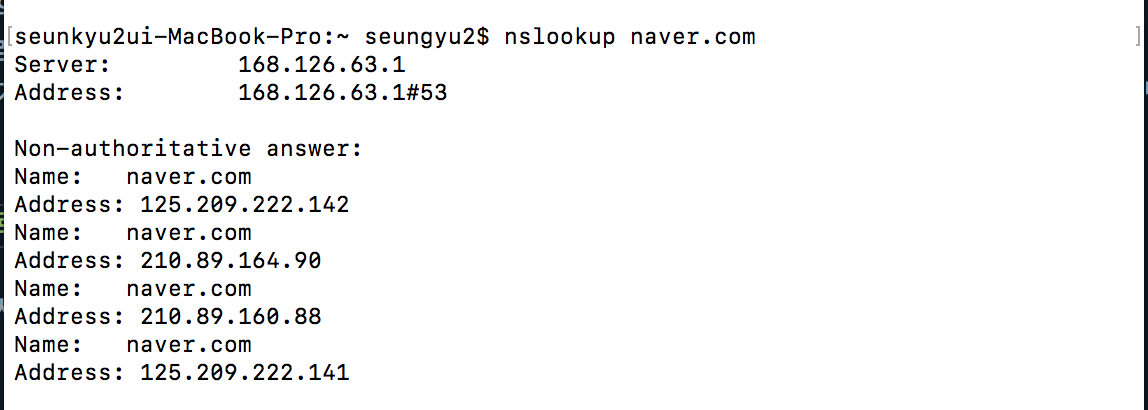 - 첫번째 DNS 룩업 주소는 125.209.222.142