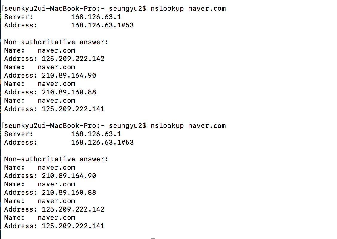 - 첫번째 DNS 룩업 주소는 125.209.222.142